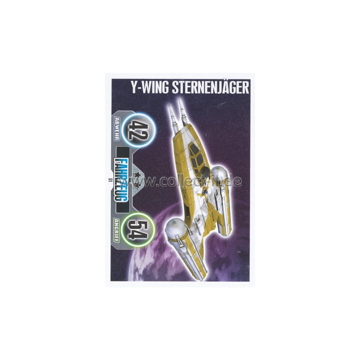 TOPPS Star Wars Force Attax - Boosterfrisch - FA051 - Y-WING STERNENJÄGER - Fahrzeug - Die Republik