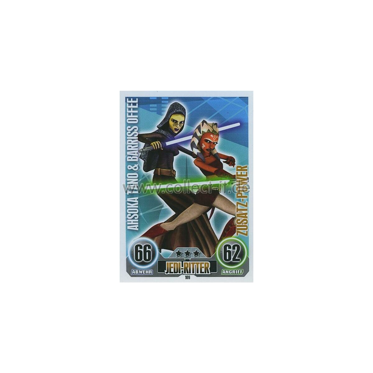 TOPPS Star Wars Force Attax - Boosterfrisch - FA109 - AHSOKA TANO & BARRISS OFFEE - Jedi-Ritter - Zusatz-Power